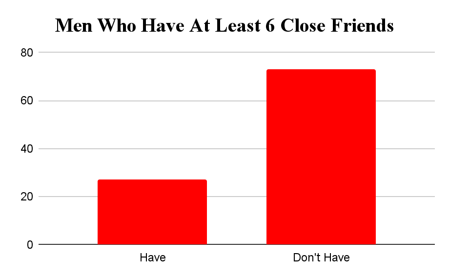 According to a study by the Survey Center on American Life, 28% of men under 30 report having no close social connections, and this percentage increases as men get older.